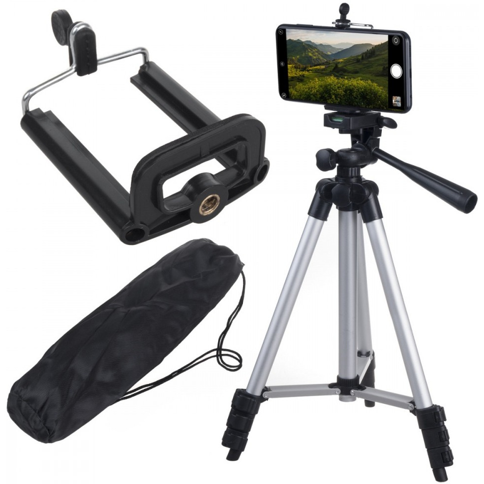 Pozostałe parametry: Odpowiedni do zamocowania aparatów, kamer, smartfonów, lamp pierścieniowych Regulacja wysokości od 36 do 102 cm Dzięki swojej konstrukcji może stać na nierównych powierzchniach Wbudowana poziomica W zestawie uniwersalny uchwyt na smartfon - odpowiedni do telefonów o szerokości od 5,5 do 8,5 cm Możliwość zamocowania urządzeń z gwintem 1/4" Niska waga oraz niewielkie rozmiary pozwalają na zabranie go ze sobą dosłownie wszędzie Do zestawu dołączony jest pokrowiec, ułatwiający transport