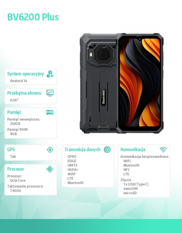 Blackview BV6200 Plus to smartfon, który łączy wytrzymałość, wydajność i długą żywotność...