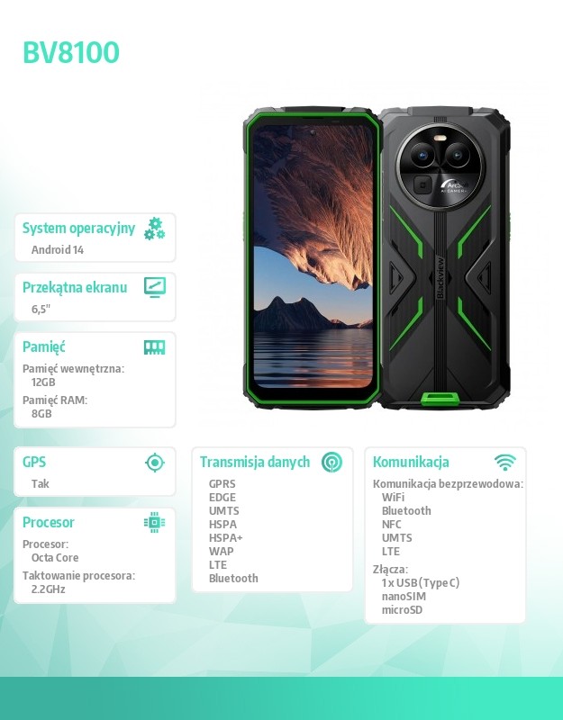 Producent: Blackview | Kod produktu: TEBVWPABV8100GN