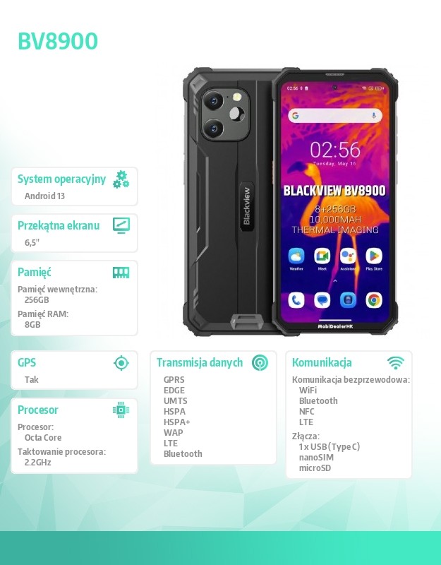Smartfon Blackview BV8900 cechuje się pancerną konstrukcją, dzięki czemu posłuży Ci w każdych, nawet najcięższych warunkach. Model ten wyposażony jest w profesjonalną kamerę termowizyjną z 4-krotnym zoomem, która umożliwia szybkie zlokalizowanie wszystkich potencjalnych uszkodzeń i nieszczelności. Z jej pomocą, wykryjesz wszystkie gorące punkty, zidentyfikujesz potencjalne zagrożenia i będziesz monitorować temperaturę.