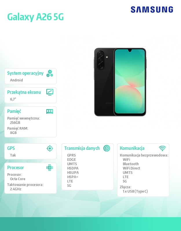 Smartfon Galaxy A26 5G 8/256GB czarny