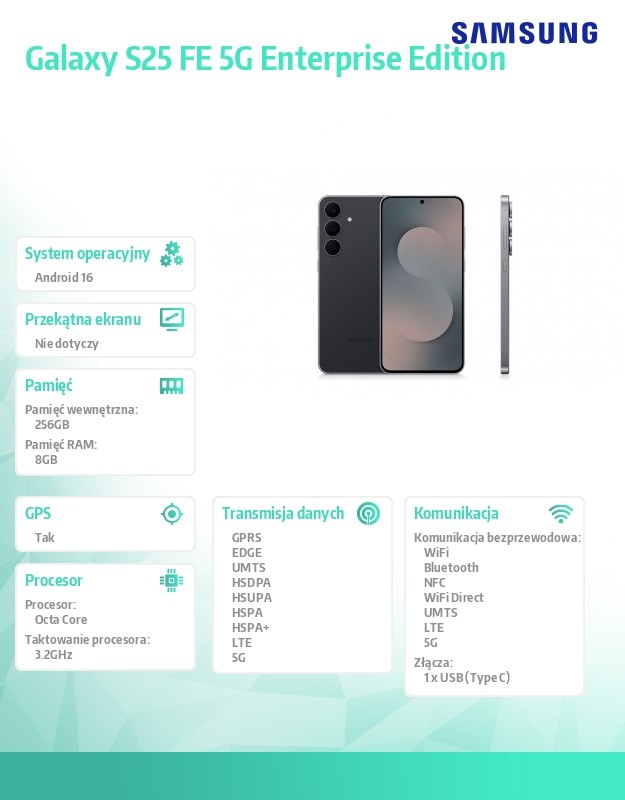 Smartfon Galaxy S25 FE 5G 8/256GB Enterprise Edition czarny
