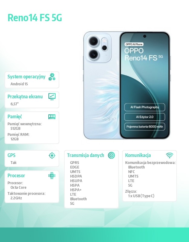 Smartfon Reno14 FS 5G 12/ 512GB Niebieski CPH2743
