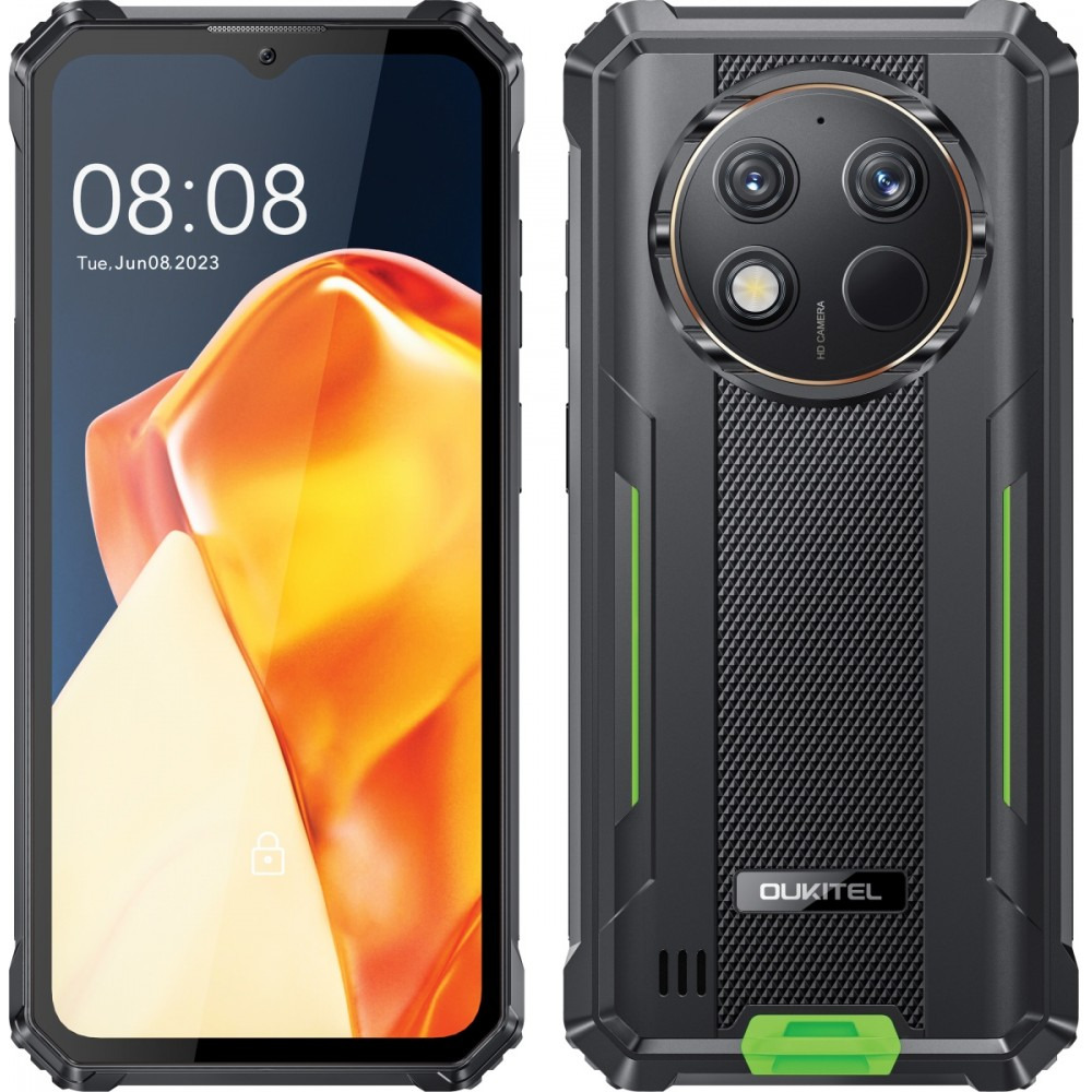 Pancerny Smartfon Oukitel WP28 8/256 GB Wyświetlacz IPS 6,52-cala, rozdzielczość 1600 x 720 px Bardzo duża pojemność baterii 10 600 mAh i szybkie ładowanie 18W Główny aparat 48 MP i 2 MP obiektyw makro, z przodu aparat 5 MP Niesamowita wytrzymałość IP68 & IP69K, MIL-STD-810H Technologia wirtualnego rozszerzania pamięci RAM 8GB + 7 GB Duża pamięć wbudowana 256 GB + obsługa kart pamięci do 1 TB TF Wydajny ośmiordzeniowy procesor Unisoc T606 (8 x 1.6GHz) System Android 13.0