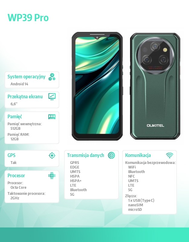 Smartfon WP39 Pro 5G 12/512GB IP69K zielony