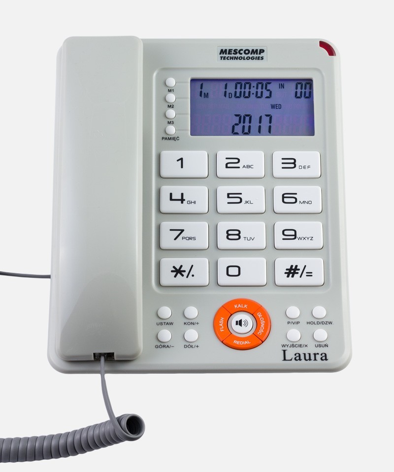 Aparat telefoniczny przewodowy Mescomp Laura to unikatowe zestawienie elegancji oraz komfortu codziennego użytkowania przez osoby starsze, niepełnosprawne jak i w biurze.