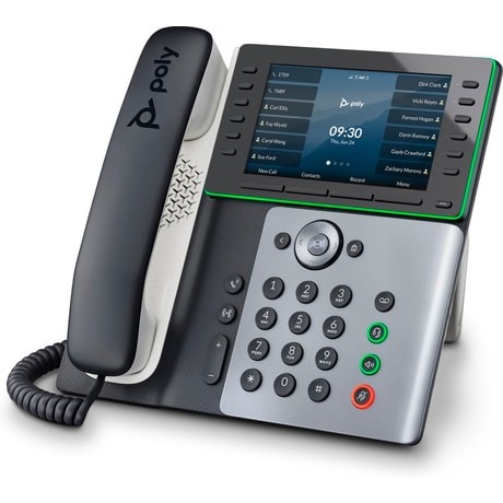 Zintegrowany moduł Bluetooth 5.0 zapewnia swobodę poruszania się po biurze z wykorzystaniem zestawu słuchawkowego Poly Bluetooth i odbierania połączeń kierowanych na telefon komórkowy na telefonie stacjonarnym. Szybkie parowanie z wybranymi zestawami słuchawkowymi Poly ułatwia podłączenie takiego zestawu.