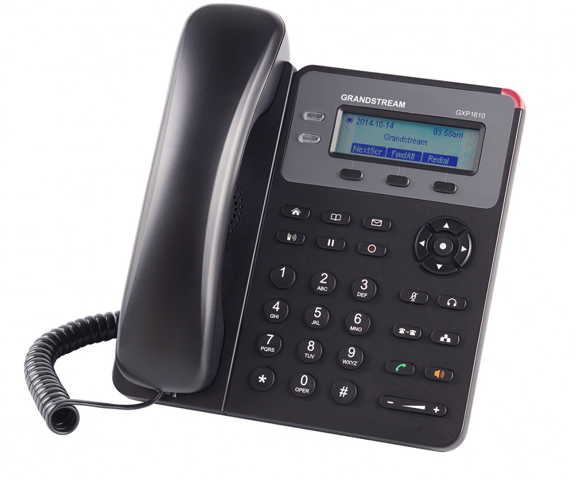 GXP1610 jest łatwym w obsłudze telefonem IP przeznaczonym dla m ałych i średnich przedsiębiorstwo oraz biur domowych. Model działa pod kontrolą systemu Linux ora z obsługuje jedno konto SIP i maksymalnie dwie instancje połączenia, a także jest wyposażony w trzy klawisze programowalne XML. Wygodną obsługę zapewnia ekran LCD o rozdzielczości 132 x 48 pikseli o doskonałej jakości obrazu. Dzięki dodatkowym funkcjom, takim jak dwa przełączane porty 10/ 100 Mb/s, obsługa wielu języków interfejsu, funkcji EHS (Electronic Hook Switch elektroniczny przełącznik widełkowy) do zestawów słuchawkowych firmy Plantronics, funkcji oczekiwania na połączen ie oraz 3-osobowe połączenia konferencyjne, model GXP1610 jest wysokiej jakości, łatwym w ob słudze i niezawodnym telefonem IP.