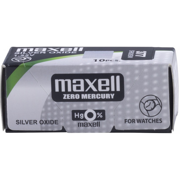 Maxell jest wiodącym na świecie producentem przyjaznych dla środowiska baterii zegarkowych niezawierających rtęci. Ogniwa z tlenku srebra to podstawowe ogniwa o długiej żywotności stosowane w zegarkach kwarcowych, gdzie wymagana jest duża gęstość energii na jednostkę objętości i stabilne napięcie robocze. Aby podkreślić różnicę pomiędzy akumulatorami bezrtęciowymi z tlenkiem srebra i standardowymi akumulatorami z tlenkiem srebra, firma Maxell oznaczyła wariant bezrtęciowy znakiem ?Hg0%?. Napięcie: 1.55V Pakowane po 1 sztuce w blistrze. Opakowanie zawiera 10 baterii zegarkowych. Nie zawierają rtęci. Wysoka wydajność Odpowiednie do zegarków z podświetleniem i/lub alarmem. Wyprodukowano w Japonii.