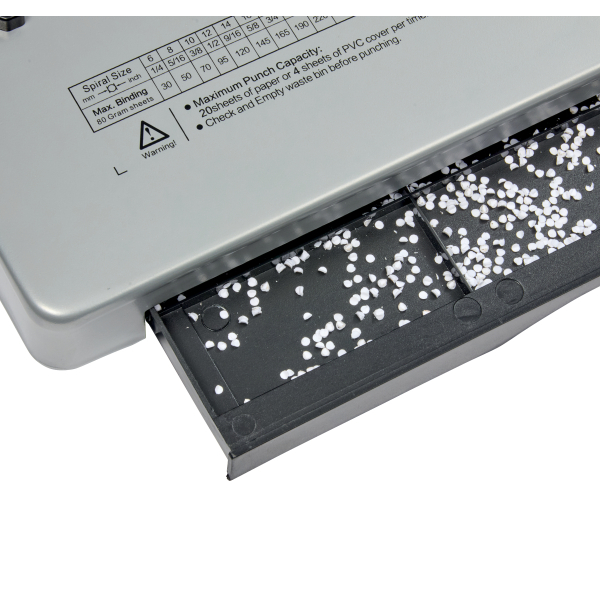 Bindownica GBC MC59, wykonana z wytrzymałego metalu, zapewnia łatwą oprawę wielostronicowych dokumentów. Łączy w sobie możliwość dziurkowania do 20 kartek (70 g/m2) i oprawiania do 450 kartek A4 (w grzbiety spiralne 50 mm) przy użyciu elektrycznego podajnika, co gwarantuje wydajną i niezawodną oprawę dokumentów. Kolor srebrny.