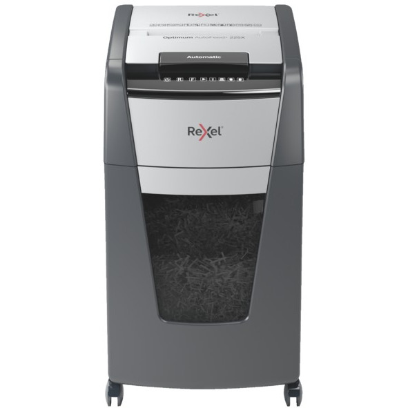 Niszczarka automatyczna do papieru Optimum AutoFeed+ 225X jednorazowo niszczy automatycznie do 225 kartek A4 (80 gsm), tnąc arkusze na konfetti (o wymiarach 4 x 26 mm), co zapewnia poziom bezpieczeństwa P-4. Wyposażona jest w automatyczny podajnik i 60-litrowy pojemnik na ścinki, co sprawia, że idealnie nadaje się do użytku biurowego. Nie wymaga ręcznego podawania papieru ani wcześniejszego usuwania zszywek i spinaczy - ta automatyczna niszczarka całą pracę wykona za Ciebie.