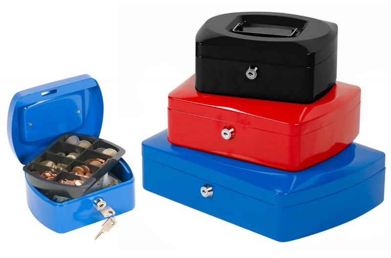 ekstra duża kasetka na pieniądze wyprodukowana z lakierowanego proszkowo metalu odpornego na zarysowania