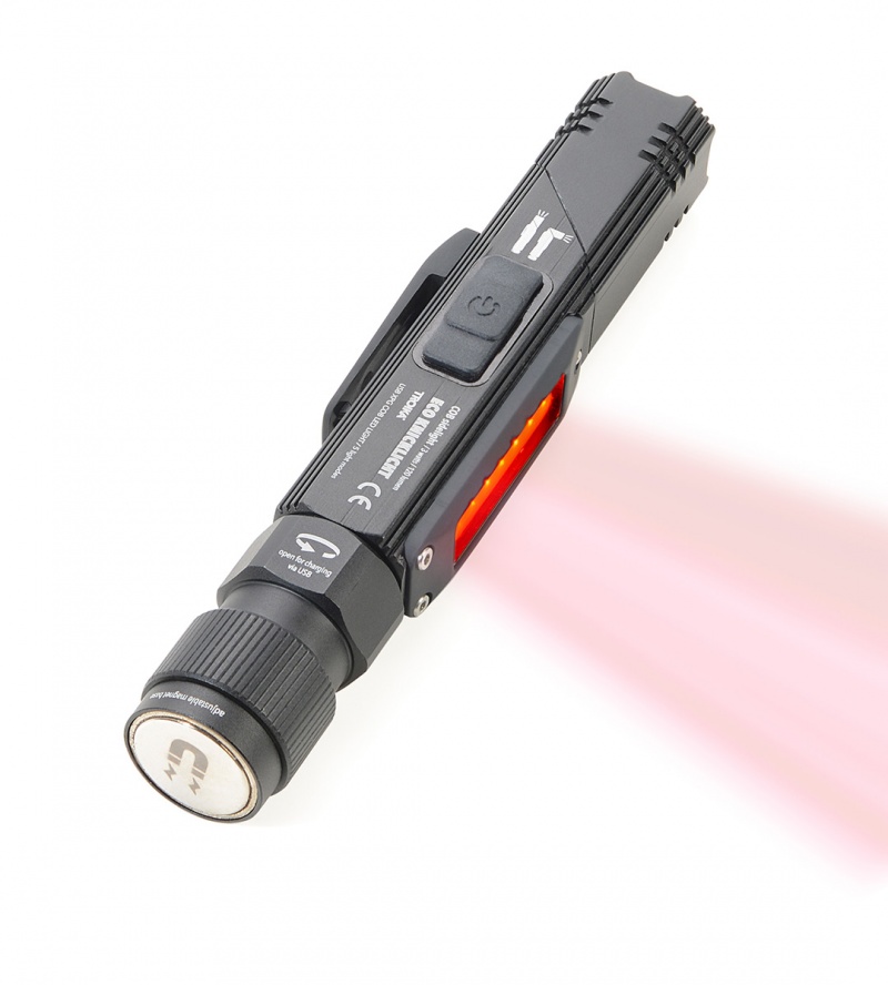 diody LED COB z boku zapewniają 120 lumenów, zarówno w postaci białego światła do pracy, jak i czerwonego światła ostrzegawczego ? z funkcją szybkiego migania