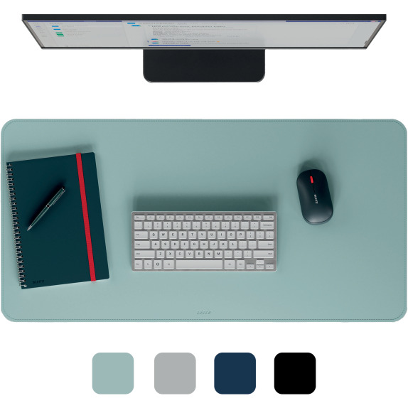 Duża mata Leitz na biurko pozwoli Ci zachować produktywność i dobre samopoczucie w każdym miejscu pracy. Łatwa do czyszczenia, wodoodporna mata ochronna pomaga utrzymać porządek na biurku. Duża powierzchnia o wymiarach 80 x 40 cm pomieści klawiaturę, mysz komputerową, notatnik i akcesoria oraz ochroni blat biurka przed zarysowaniami, plamami, zadrapaniami czy zalaniem. Kompatybilna ze wszystkimi laserowymi i optycznymi myszami. Zwijana, wyposażona w zabezpieczający pasek, aby ułatwić przenoszenie i pracę przy biurkach współdzielonych. Opakowanie nie zawiera plastiku. W przyjemnym matowym kolorze, w minimalistycznym wzornictwie, z zaokrąglonymi narożnikami. Wielofunkcyjne zastosowanie jako podkładka do pisania lub podkładka pod mysz zapewnia jej użyteczność i podczas pracy, i podczas gier czy zabawy. FEEL GOOD dzięki Leitz.