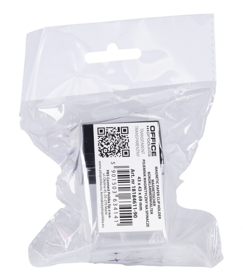 Pojemnik magnetyczny na spinacze OFFICE PRODUCTS, prostokątny, pusty, transparentny