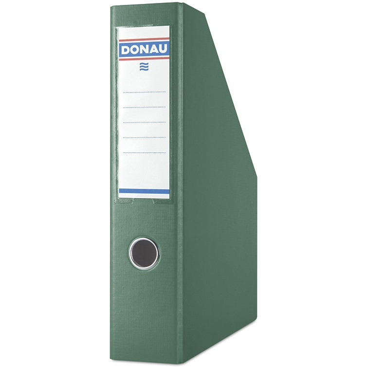 wykonany z tektury o grubości 2,1mm pokrytej ekologiczną folią polipropylenową (100 m) o strukturze płótna posiada Zielony Punkt (Der Gr ne Punkt) - udział w systemie recyklingu i odzysku odpadów wynikający z przepisów prawa polskiego i UE okładzina wewnętrzna: biały offset 90-100g szerokość grzbietu: 75mm pojemność: do 750 kartek o gramaturze 80gsm odpowiada jakością segregatorom - po ustawieniu na półce, nie do odróżnienia od klasycznych segregatorów posiada wycięcie na palec do wygodnego wkładania / zdejmowania pojemnika z półki zawiera wymienną etykietę grzbietową składany bardzo prosty w montażu wymiary: 75x320x245mm kolor zielony