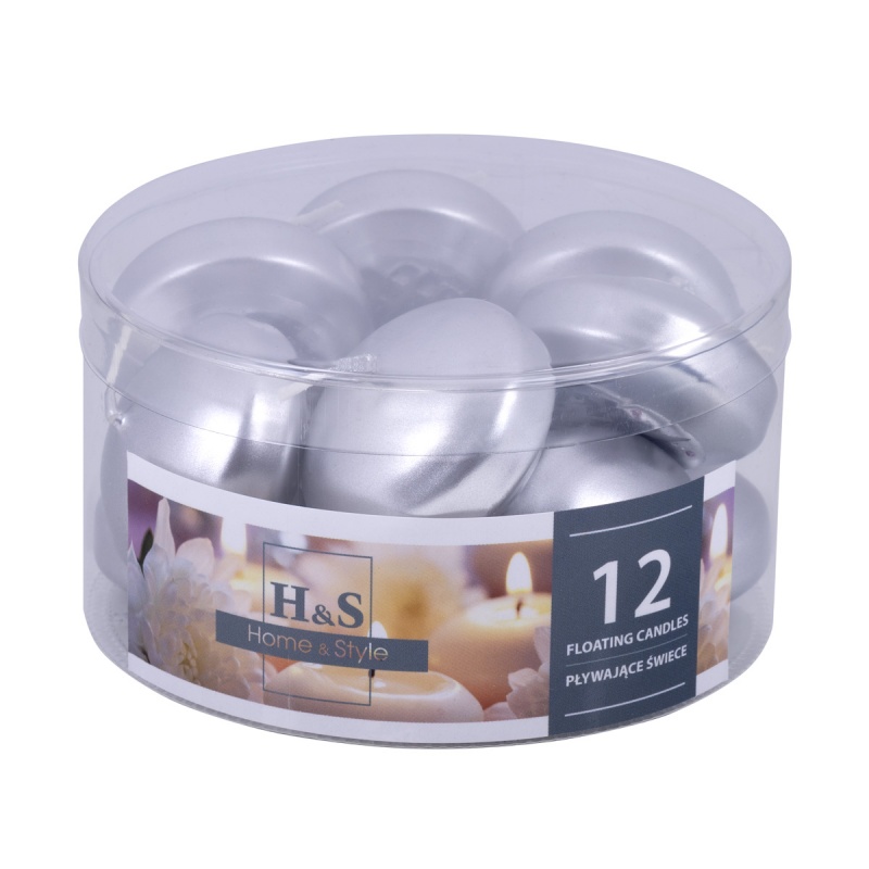 ¦wieca p³ywaj±ca pastylka DONAU HOME, lakierowana, 48x28 mm, 12 szt., srebrna