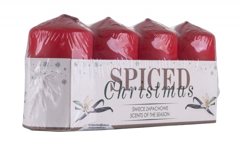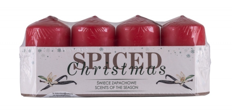 Świeca słupek DONAU HOME Spiced Christmas, 40x70mm, 4 szt., wanilia, czerwony
