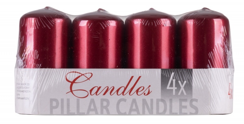 ¦wieca s³upek DONAU HOME Standard Lakier, 50x100mm, 4 szt., czerwony metaliczny po³ysk