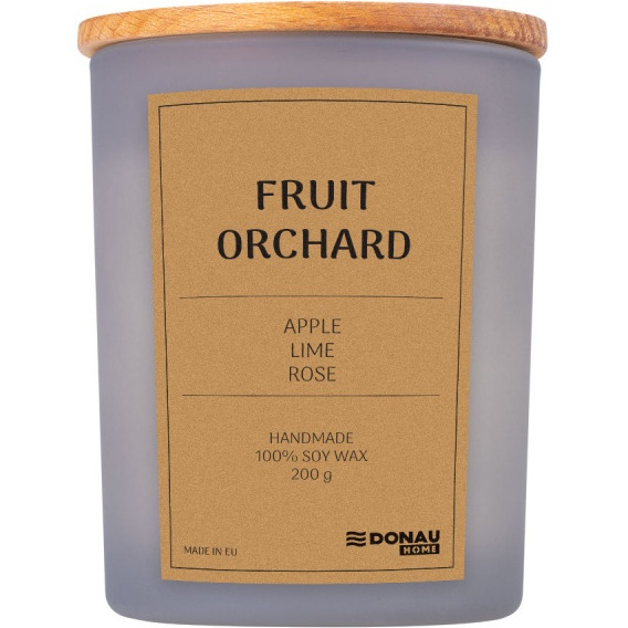 Świeca sojowa DONAU HOME, w szarym szkle, drewniana pokrywa i knot, Fruit Orchard, 200g