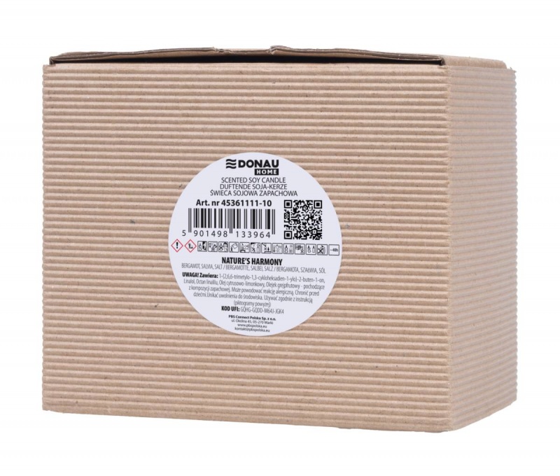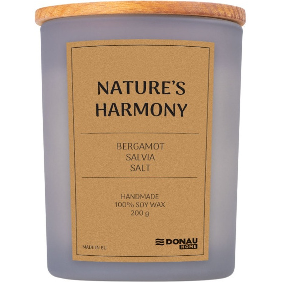 Świeca sojowa DONAU HOME, w szarym szkle, drewniana pokrywa i knot, Nature's Harmony, 200g