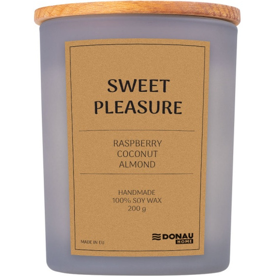 Świeca sojowa DONAU HOME, w szarym szkle, drewniana pokrywa i knot, Sweet Pleasure, 200g