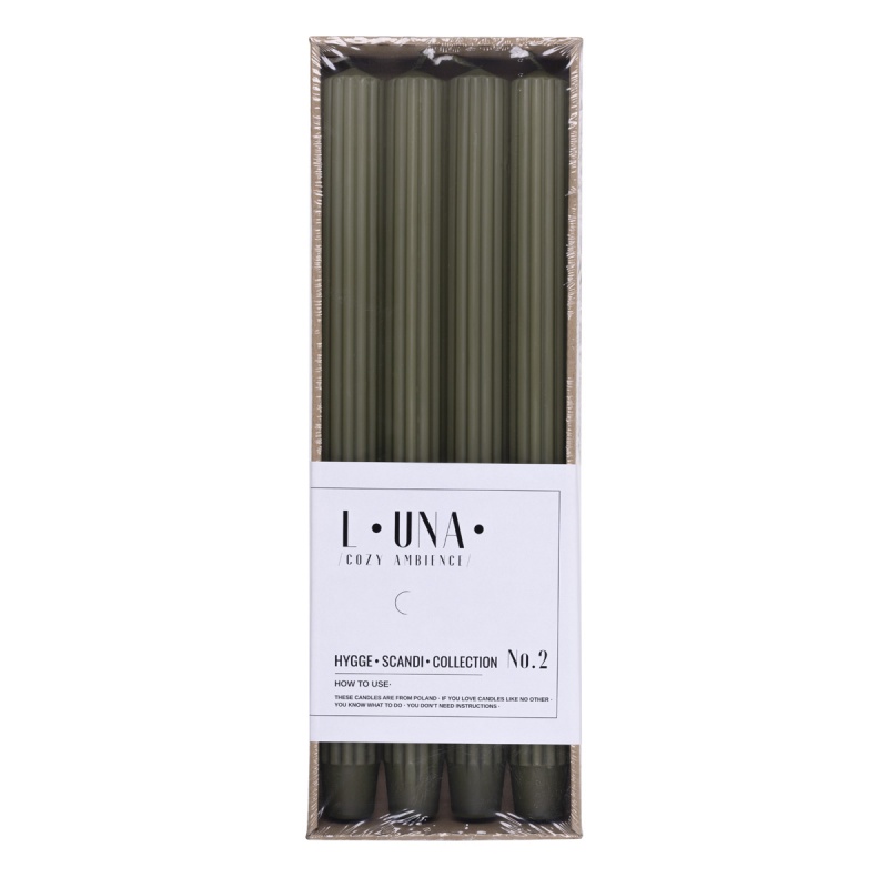 ¦wieca sto³owa d³uga ryflowana DONAU HOME, 25x300 mm, 4 szt., khaki