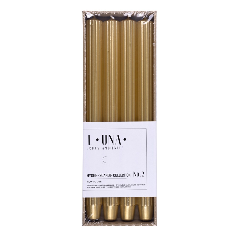 ¦wieca sto³owa d³uga ryflowana DONAU HOME, lakierowana, 25x300 mm, 4 szt., z³ota