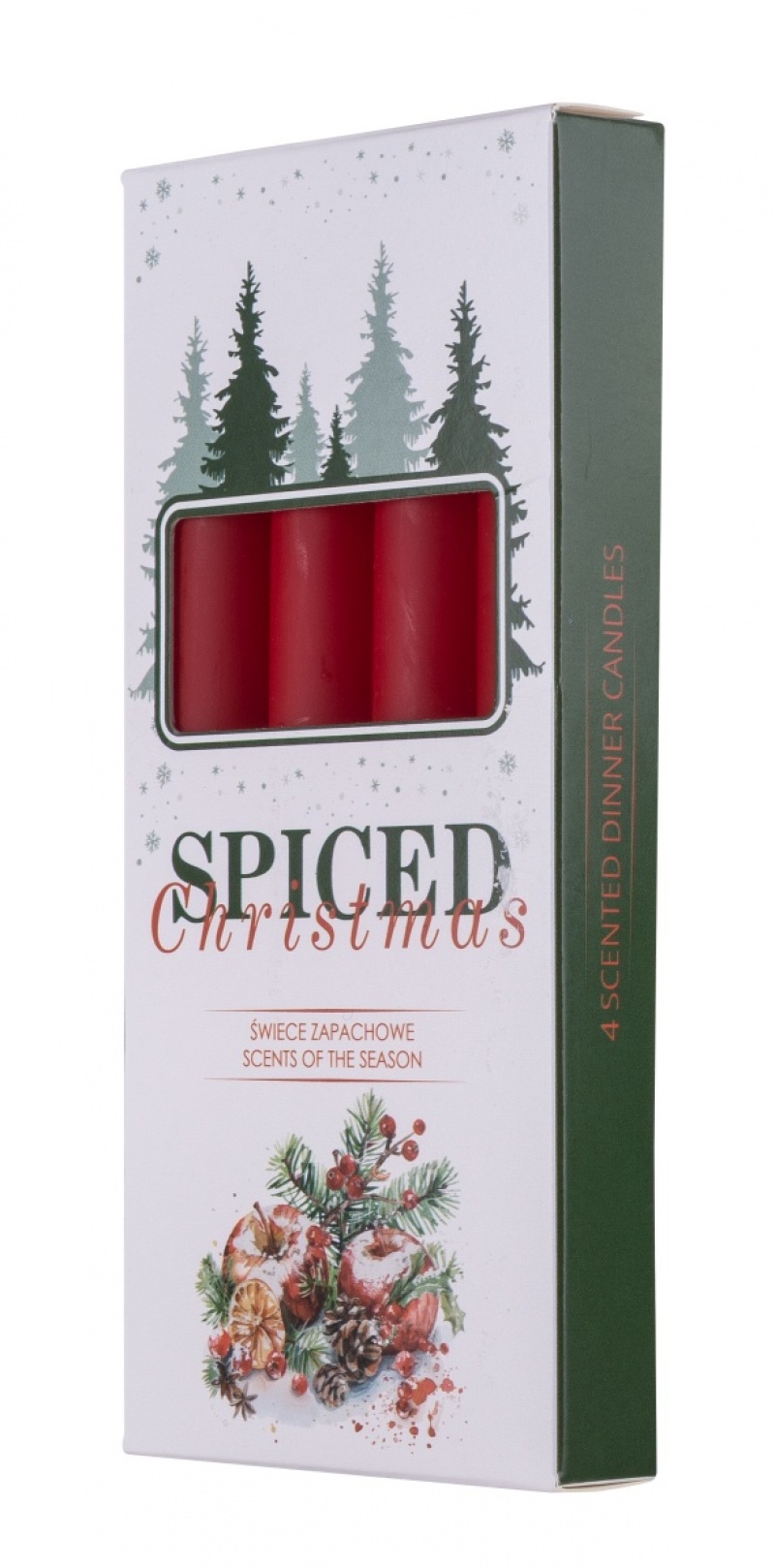 ¦wieca sto³owa DONAU HOME Spiced Christmas, 20x170mm, 4 szt., jab³ko z cynamonem, czerwony