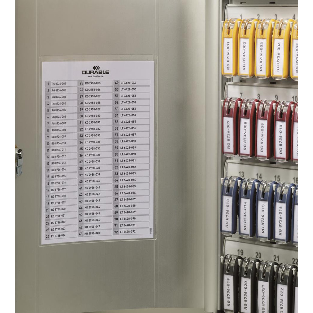 KEY BOX - skrzynki na klucze. Szafka na klucze z zawieszkami Durable - ponadczasowe wzornictwo - obudowa wykonana z aluminium - każda skrzynka zamykana na zamek (w komplecie dwa klucze oprócz skrzynki na 12 kluczy zamykanej na rygiel) - każda skrzynka wyposażona w woreczek z sześcioma zawieszkami na klucze w różnych kolorach, zawieszki te służą jako zapas - w zestawie znajdują się kołki niezbędne do montażu skrzynki na ścianie - Wielkości odpowiednio na 12, 18, 36, 54, 48 i 72 klucze. - jednostka sprzedaży 1 sztuka
