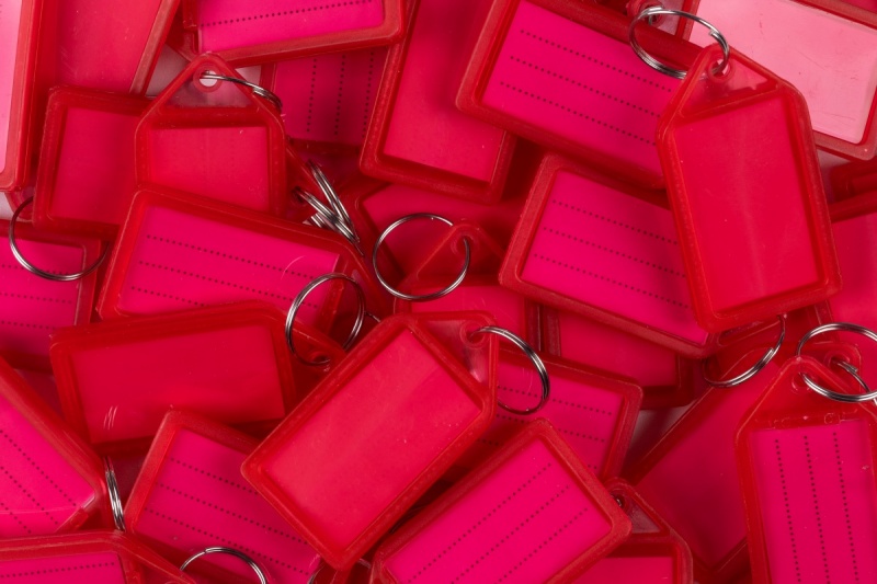 wyposażone w etykietkę opisową oraz kółeczko o średnicy 15mm łączące zawieszkę z kluczem