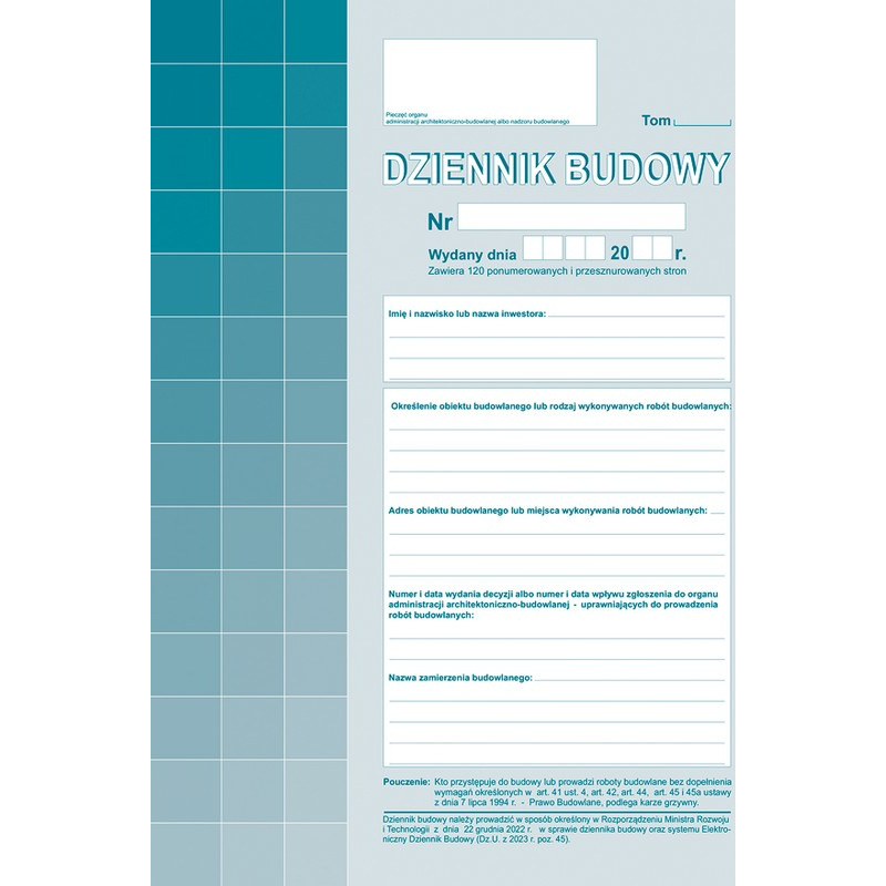 603-2Z Dziennik budowy 120stron A4 Michalczyk i Prokop