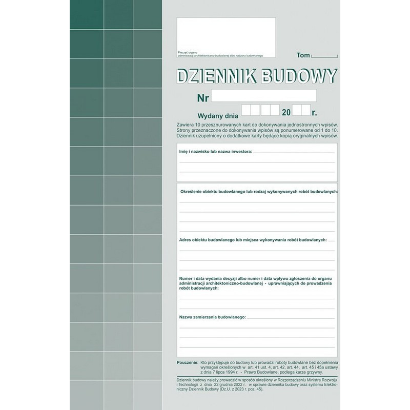 603-S11 Dziennik Budowy A4, 20str. (10 kompletów oryginał+kopia) samokopia Michalczyk i Prokop