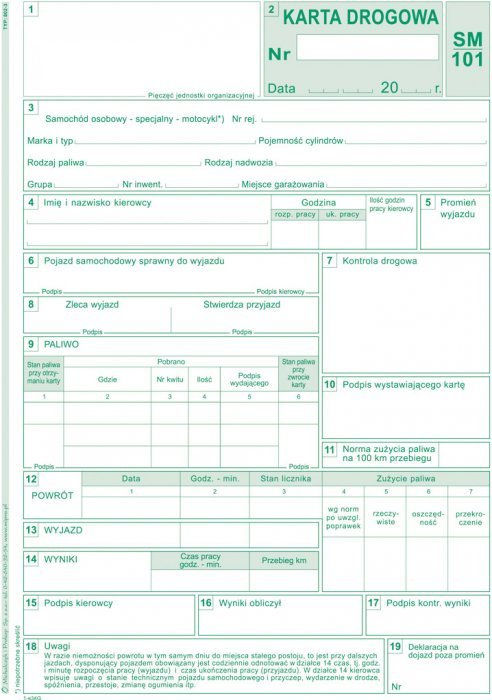 Karta drogowa SM/101 samochód osobowy (numerowana), A5, offset