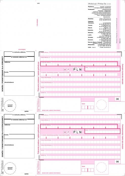 F-111-2 2-odcinkowe polecenie przelewu MICHALCZYK&PROKOP A4 100 kartek