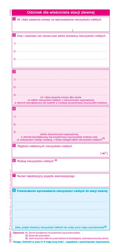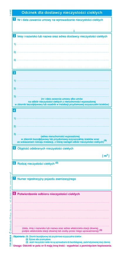S-100-8 Potwierdzenie odbioru nieczystości ciekłych w zlewni MICHALCZYK I PROKOP