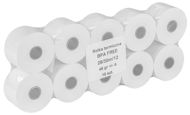 Rolki termiczne OFFICE PRODUCTS, 28mm x 30m, gr. 48 +/- 6, 10 szt., białe