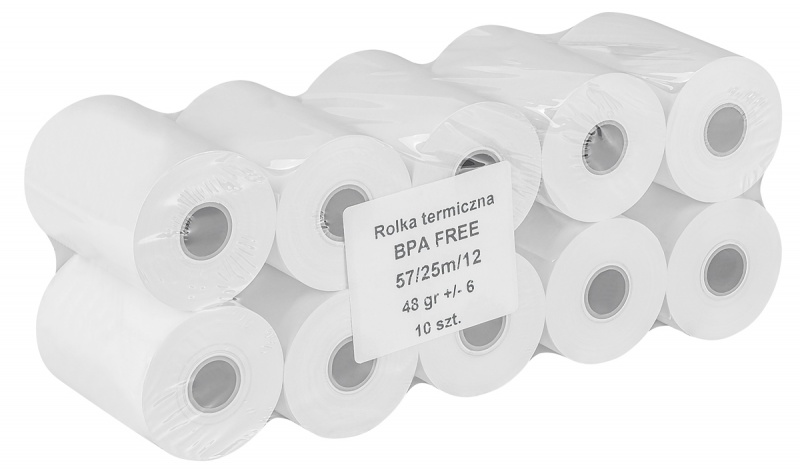Rolki termiczne OFFICE PRODUCTS, 57mm x 25m, gr. 48 +/- 6, 10 szt., białe