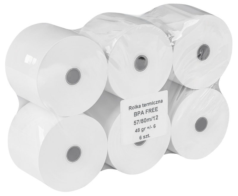 Rolki termiczne OFFICE PRODUCTS, 57mm x 80m, gr. 48 +/- 6, 6 szt., białe
