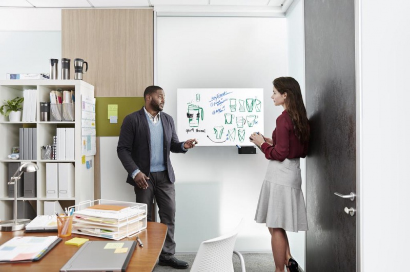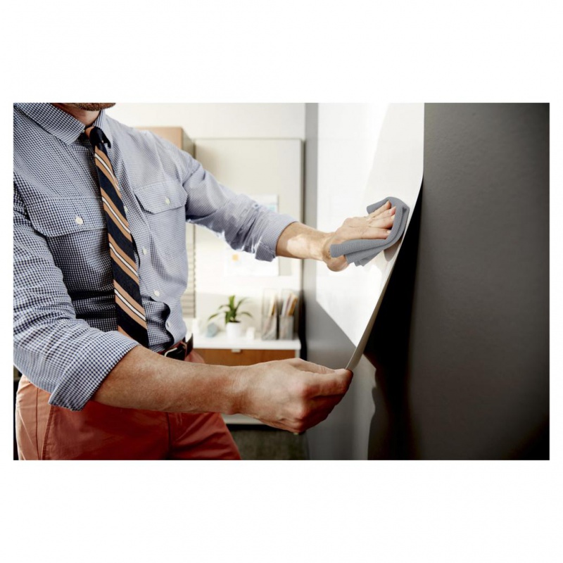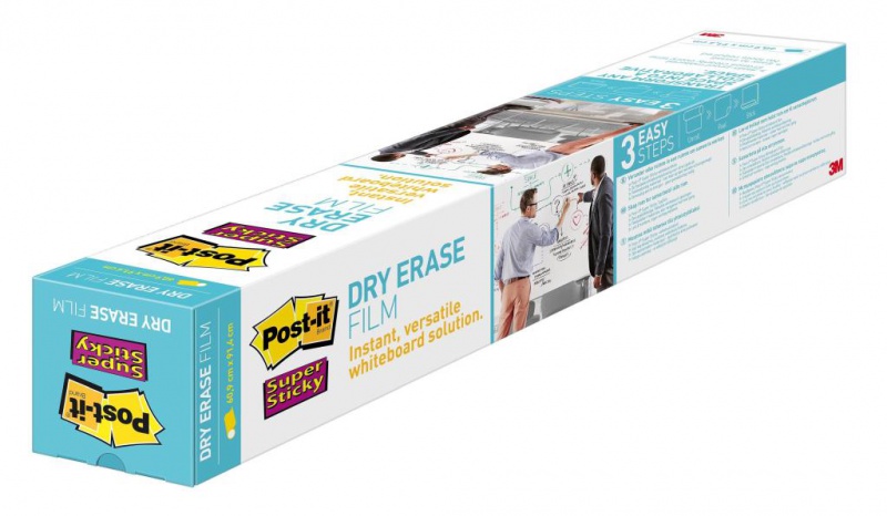 natychmiastowa i uniwersalna przestrzeń suchościeralna do pracy do aplikacji pionowej lub poziomej wykorzystaj dowolną przestrzeń (ścianę, stół, okno) jako miejsce do współpracyŁatwa w instalacji - po prostu ją rozwiń, zdejmij folię ochronną a następnie przyklej do powierzchni gładka powierzchnia, po której łatwo się pisze folia jest odporna na przeciekanie - można ją wyczyścić przy użyciu suchej szmatki folia jest elastyczna, więc możesz ją zamontować na nieregularnej powierzchni oraz dociąć do odpowiedniego kształtu świetnie sprawdzi się do odnowienia zużytej tablicy suchościeralnej lub kredowej opakowanie zawiera folię suchościeralną Post-it Dry Erase w rolce wymiary: 61x91cm kolor: biały