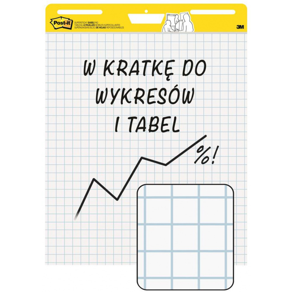 Samoprzylepne arkusze konferencyjne Post-it Super Sticky, na flipchart, 63,5x76,2cm, w kratkę do wykresów, 30 kart., białe