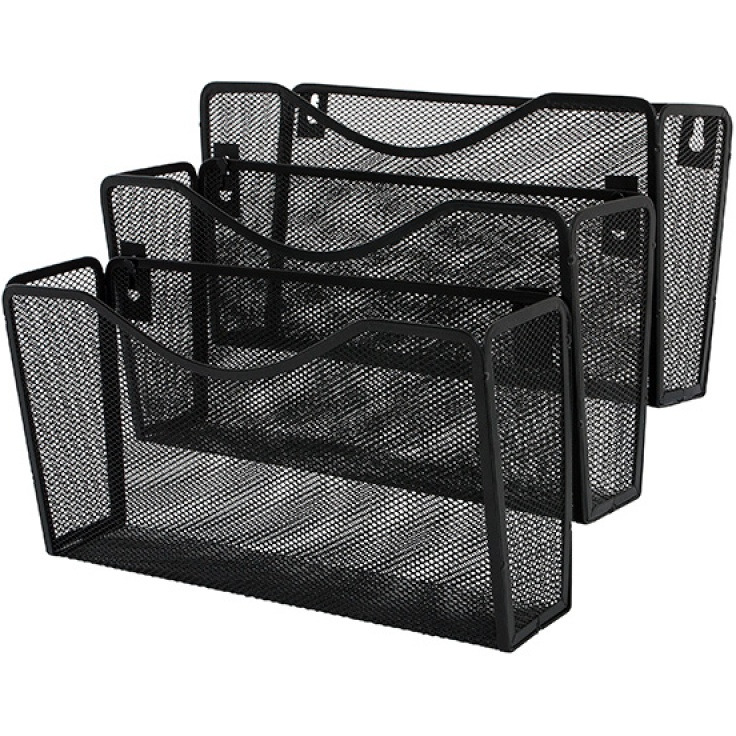 półka wykonana z metalowej siateczki powlekanej lakierem do instalacji naściennej możliwość wykorzystania szuflad jako zestaw lub pojedynczo specjalne otwory na haczyki obniżone krawędzie od strony zewnętrznej ułatwiają wyjmowanie dokumentów wymiary zestawu: 325x230x330mm wymiary pojedynczej szuflady: 325x88x170mm kolor czarny