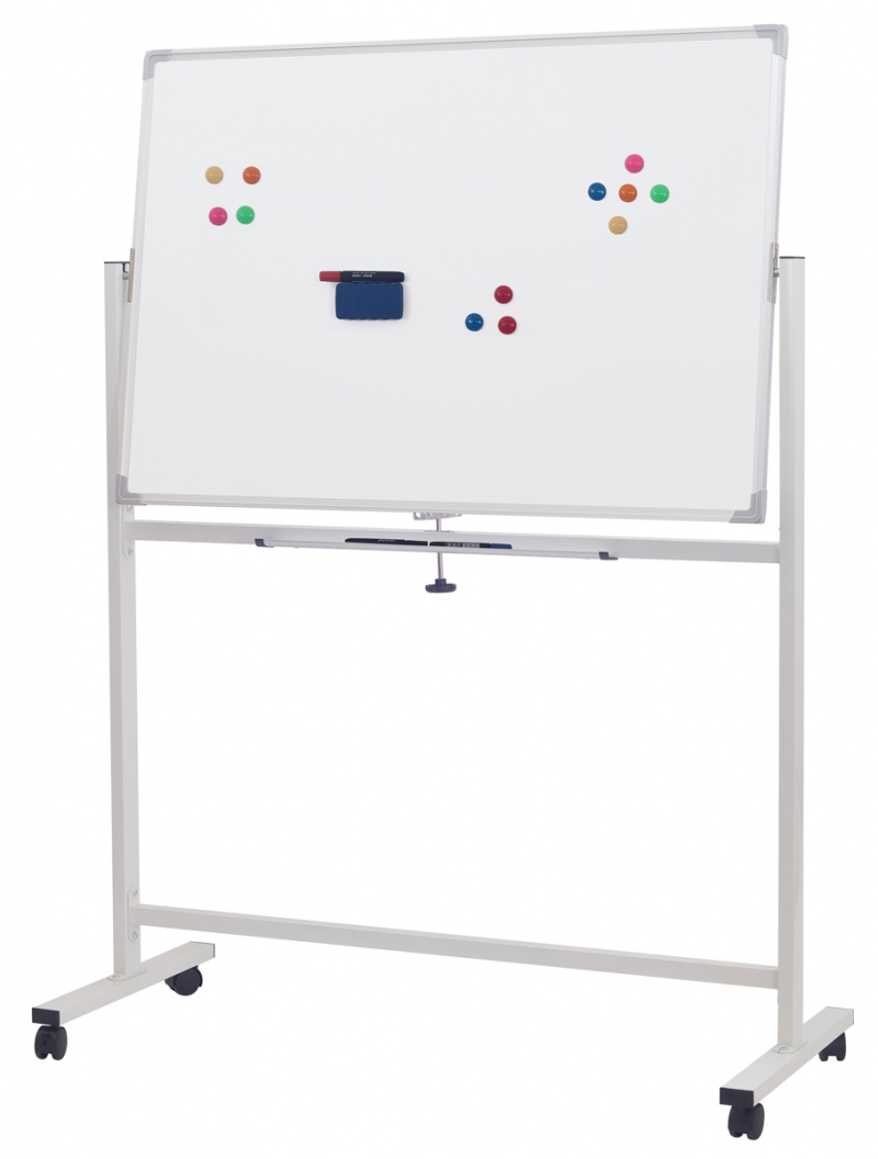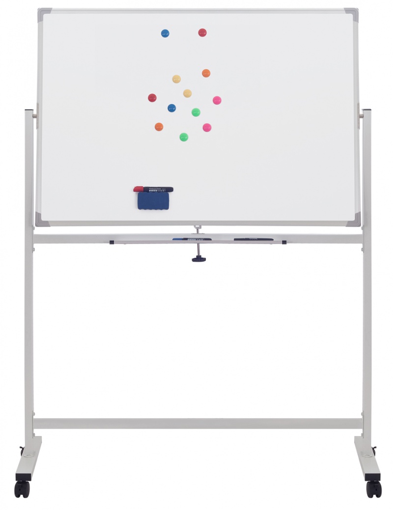 mobilna, dwustronna tablica suchościeralno-magnetyczna do zastosowań biurowych i szkoleniowych