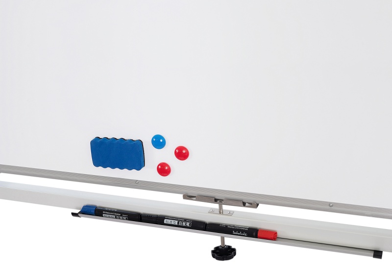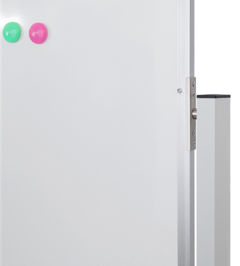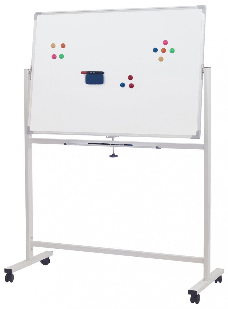 mobilna, dwustronna tablica suchościeralno-magnetyczna do zastosowań biurowych i szkoleniowych