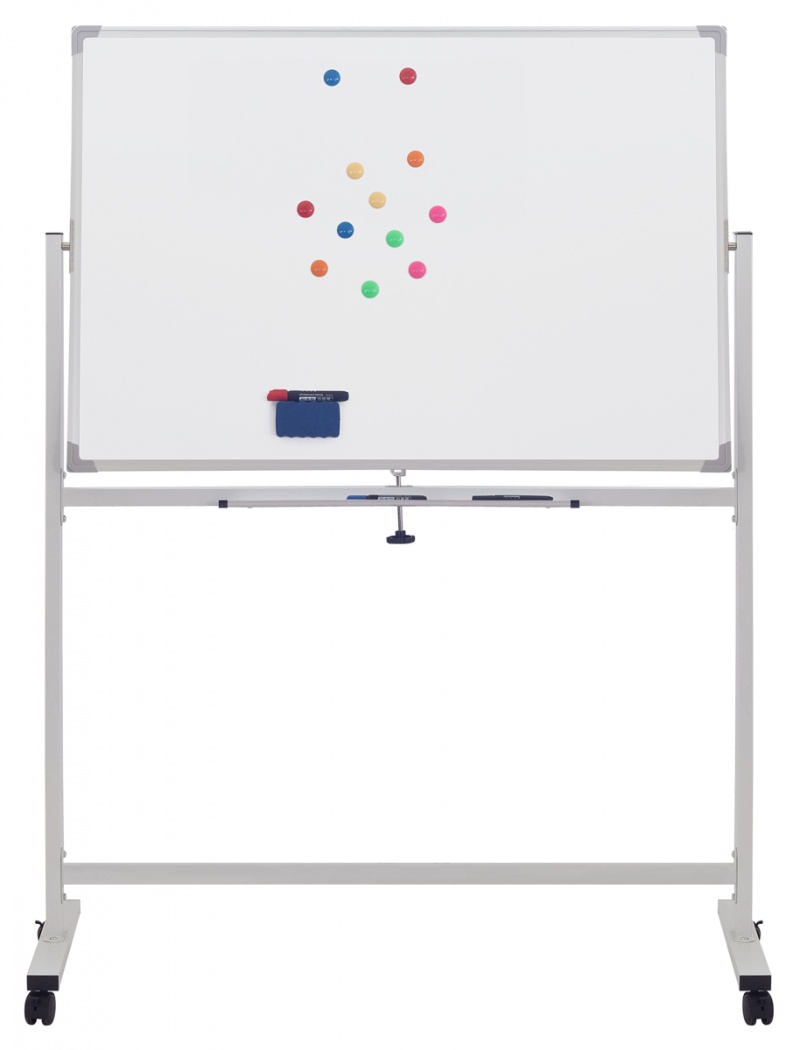 obrotowa konstrukcja pozwala korzystać z obu powierzchni bez przestawiania tablicy
