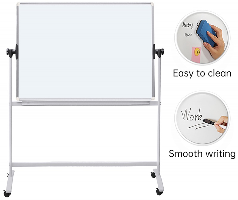 mobilna, dwustronna tablica suchościeralno-magnetyczna do zastosowań biurowych i szkoleniowych
