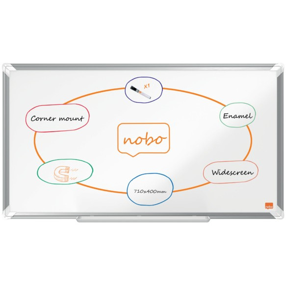 Dzięki panoramicznej suchościeralnej tablicy ceramicznej Nobo Twoje pomysły zostaną zauważone! Panoramiczny format i nowoczesna rama zapewniają dużą powierzchnię do pisania, a usytuowana pod tablicą pojemna półka na markery nie ingeruje w strefę przeznaczoną do pisania.